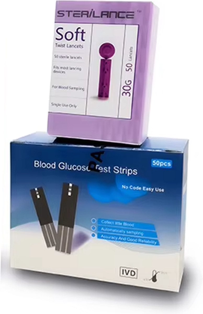 OPTIMERA® Glucosemeter Navulset (zonder apparaat) - Set van 50 Teststrips & 50 Lancetten